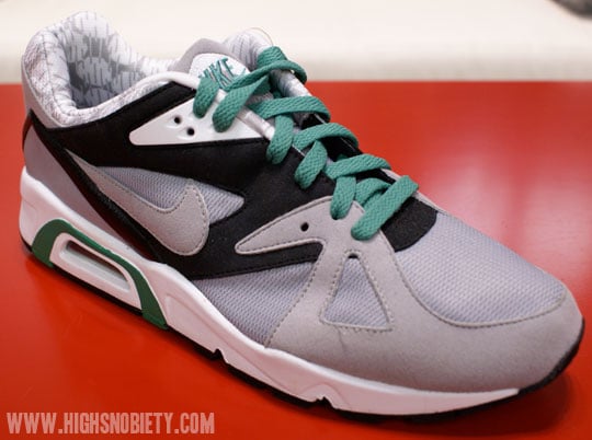 With Summer already starting, the Fall collection from Nike is slowly being reported and it is expected that two more models of the recent re-released Air Structure Triax will be sold. The first color-way consists of grey, black, and a dark shade of green along with a pattern on the inner lining. Next, is a color-way seen before feturing dark oak, purple and a snakeskin print. Expect to see these inside stores in a few weeks. Via hs.