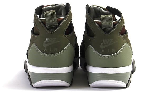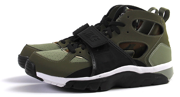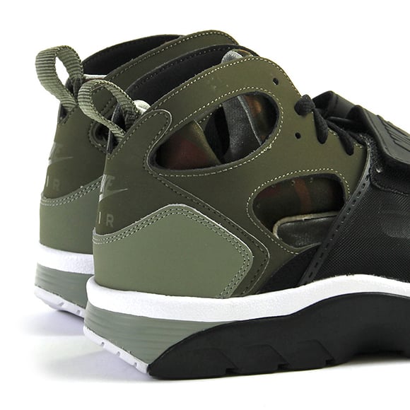 This pair of Air Trainer Huarache’s feature hits of medium olive as well as another shade of green on the uppers. Black lands on the strap and parts of the midsole while Nike placed white right above the midsole.