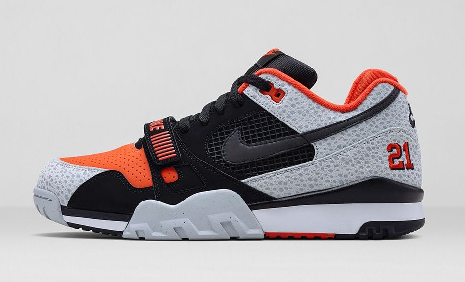 Nike Sportswear celebrates the NFL legend in a major way this weekend with the debut of the Nike Air Trainer II PRM “Barry Sanders”. With official images at hand, this Nike Air Trainer II style commemorates Sanders’ Alma mater (Oklahoma State University) with team colors and his collegiate uniform number, “21”. These retro kicks couldn’t have been designed any better as Nike brings back iconic safari print overlays plus premium leather and nubuck materials.