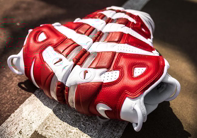 Update: The Nike Air More Uptempo Gym Red has released at retailers and can be purchased at Shiekh Shoes retailers.