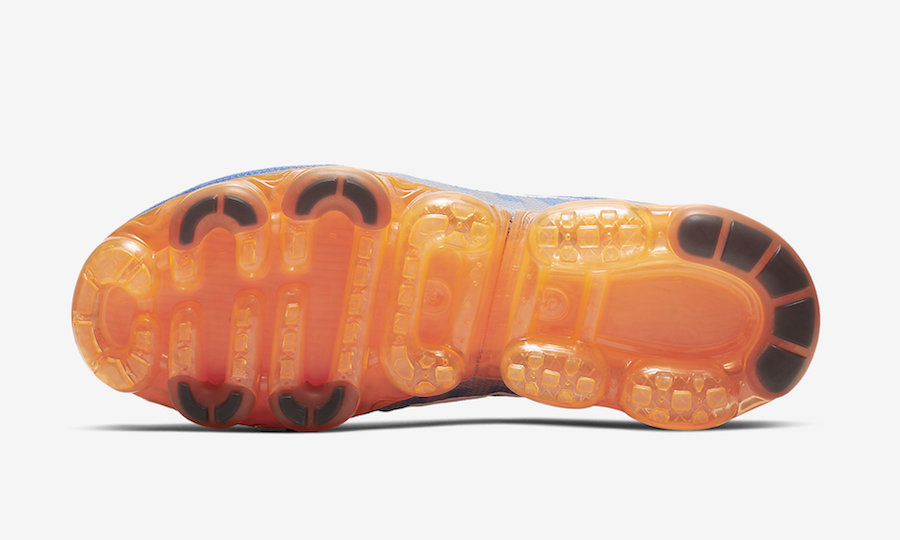 Looking closer this pair features Racer Blue across the upper while Black and White accents are seen throughout. In addition we have Orange Peel on the heel, within the VaporMax Air unit and outsole. Finishing the look is BRS on the insoles.