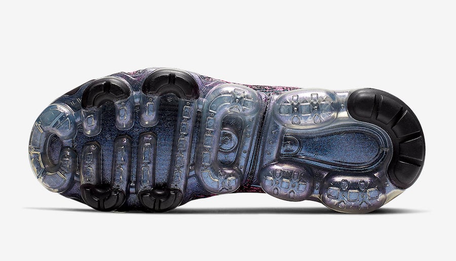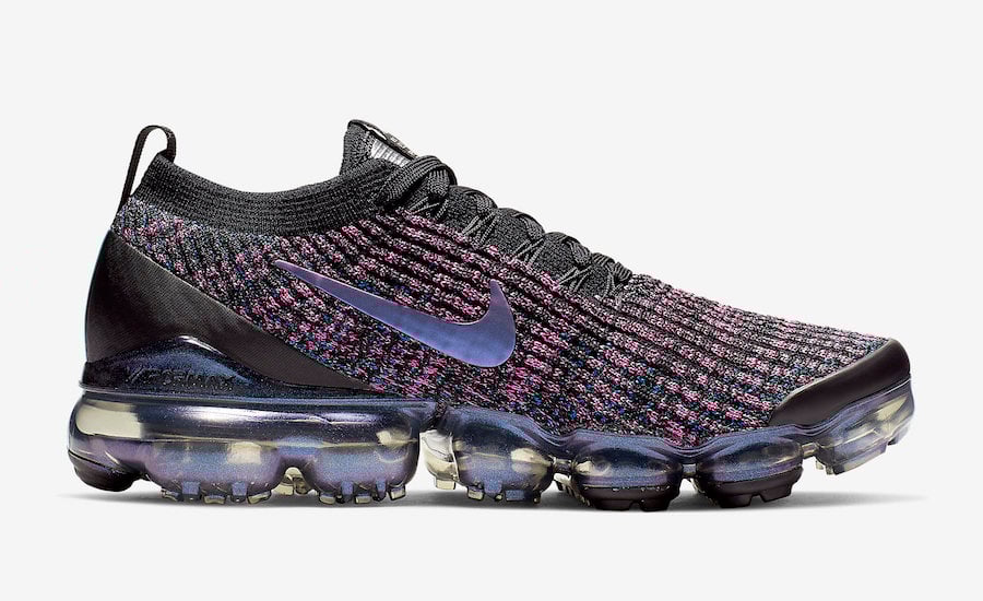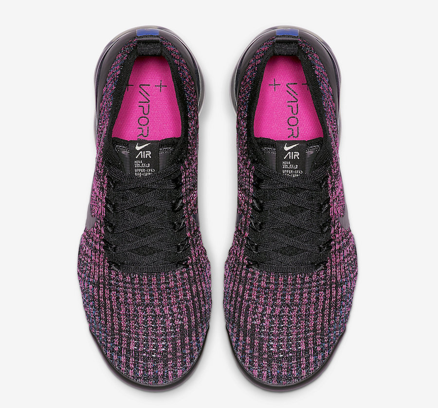 Looking closer they come dressed in a Black, Racer Blue and Laser Fuchsia color combination. This Nike Air VaporMax 3.0 features Blue and Fuchsia across the upper while Metallic is used for the Swoosh logos. Finishing the look is the same Metallic with an iridescent finish on the VaporMax Air unit.