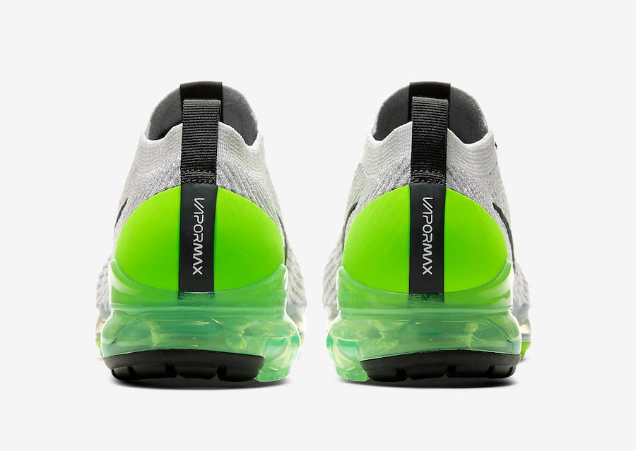 Featuring a Vast Grey, Electric Green, White and Off-Noir color combination. Highlighted with Grey Flyknit across the upper, we also have Black detailing. Other details includes Electric Green on the cables, heel counter, tongue branding and hinted across the VaporMax Air unit which finishes the look.