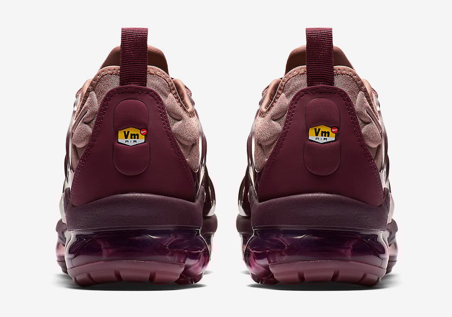 Featuring a Smokey Mauve, Bordeaux, Vintage Wine and Black color combination. This variation of the Nike Air VaporMax has a lighter shade on the upper while a darker Win hue lands on the cage overlay, heel wrap and across the full length VaporMax air unit.