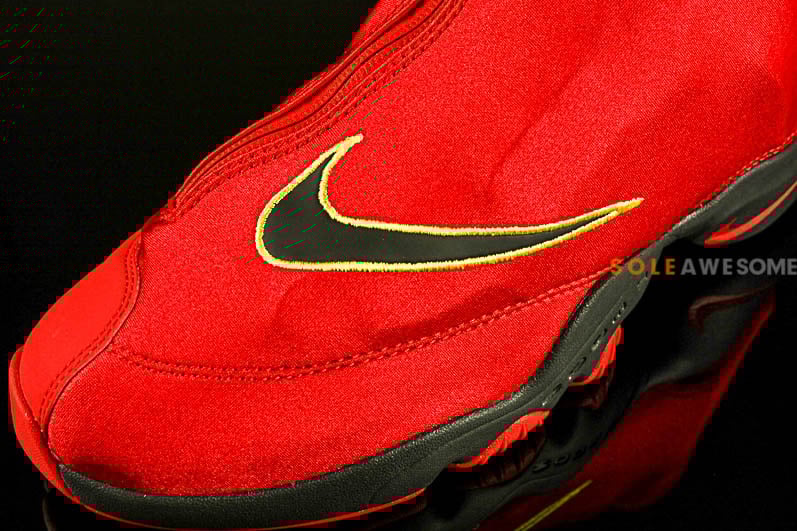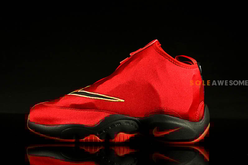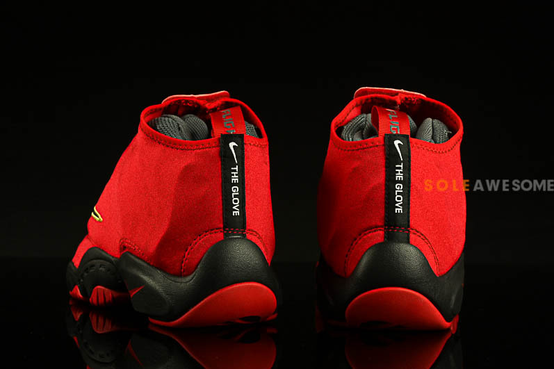 What pays homage to LeBron and team, this Nike Air Zoom Flight The Glove sports a fiery university red colorway with additional hits of dark grey, tour yellow, and black atop this signature shoe’s nylon shroud upper and inner.