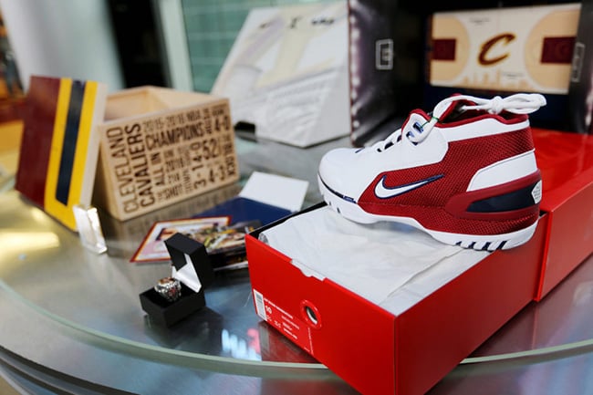 In addition to the shoes, each will come packaged in a special box constructed from the hardwood of the Cleveland Cavaliers court used from the 2015-2016 championship season. Also, a team issued 2016 Cavaliers NBA Championship ring is included.