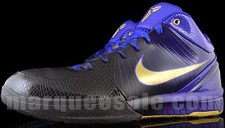 We’ve seen many anticipatory shots of Nike Kobe IV’s that sport a lot of color. One of the Kobe IV’s that sport a good chunk of black on them are the ones that also sport varsity blue and red accents. But now there are shots of another pair that sports a good amount of black. The Nike Kobe IV’s pictured here reservethe Lakers gold and purple color scheme to the back part of the shoe, while the toe box is bordered in black snakeskin leather. There still isn’t any word regarding an official release date, but you can check out more pictures of these “Gradient Lakers” Nike Kobe IV’s after the jump to see if these peak your interest.