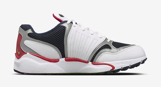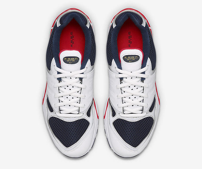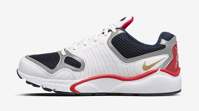 This Nike Air Zoom Talaria will feature a Patriotic theme of Red, White and Blue while hits of Gold are added in to represent what every Olympian is chasing. Using a streamlined upper along with Zoom Air, most of the uppers and midsole is covered in White. Blue then covers the mesh hits while Red runs through the pipping, inside of the tongue and placed on the heel. Completing the look is Gold which hits the Swoosh and Nike branding.