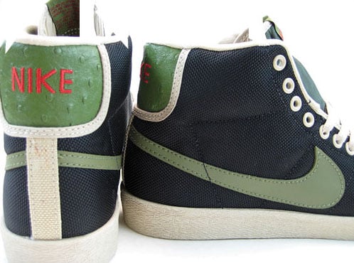 This Nike All Court is featured in blue upper and sand drift, a true clean looking shoe also featuring Ostrich on the back of the shoe. The All Court was Nike’s first low-top basketball shoe, originally introduced as the “Bruin” and the “Blazer” was their first high-top basketball shoe.