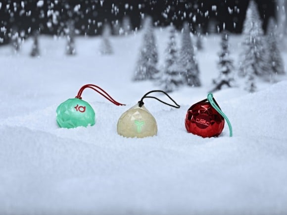 The Christmas colorways of Nike Basketball signature shoes are an annual tradition. Bold designs, material executions and seasonal concepts cut through the cold weather as the LEBRON 11, KOBE 8 SYSTEM and KD VI deliver a gift to the courts. This year, three wintertime stories are linked by special logo lacelocks that connect to create custom signature ornaments.