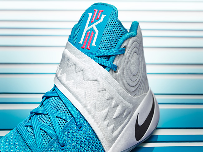 The Kyrie 2 Christmas editionโs zig-zag embossed graphic mimics teeth while the shoeโs white and blue color scheme finish off this nod to the abominable snowman. An icy, transparent outsole completes the holiday look.