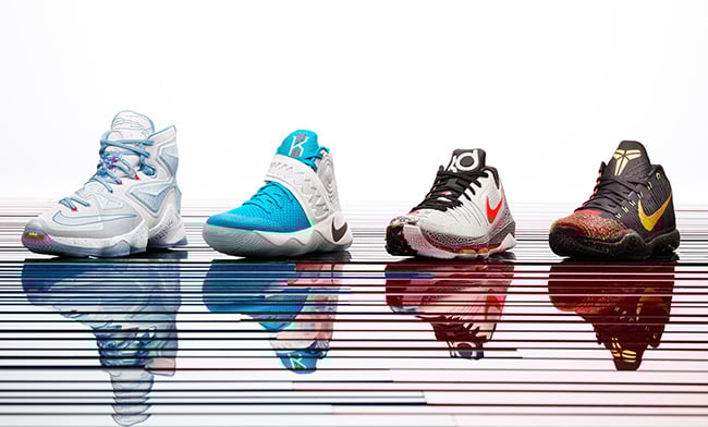 The Nike Basketball Christmas 2015 Collection will feature all four signature models that includes the Nike Kobe 10 Elite Low, Nike Kyrie 2, Nike LeBron 13 and the Nike KD 8.