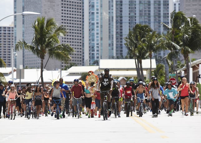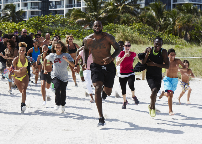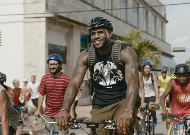The campaign depicts the daily training regime that helps make James a champion. It also highlights how Jamesโs passion and joy can inspire spectators to transform into active participants whenever he is around. In the film, James rides a bike through the streets of Miami, swims in the ocean, trains in the arena, jogs through alleys and plays impromptu hoops on a street court. Along the way, people of all ages see Jamesโsย training activity and canโt help but join in.