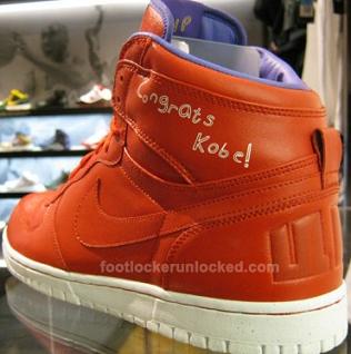 It was in the beginning of August that we found out Kobe’s biggest supporter- Lil Dez from the MVPuppets commercial campaign- would be gettin’ treated to his own pair of the Nike Big Nike. The shoe sports a red upper with purple lining and a white sole. There are congratulatory remarks to Kobe on the shoe as well as a picture of Lil Dez on the insole of one shoe, and another set of nagging questions meant for Kobe on the other insole. Lastly, instead of readin’ “NIKE” on the heel, it will read “LIL DEZ.” Starting tomorrow, Tuesday October 27, 2009, you will be able to pick these up at House of Hoops locations stateside. How many of you want to get your hands on this pair?