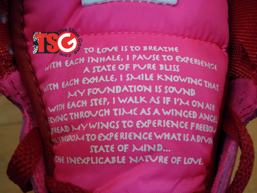 We knew Nike would create a collection of Valetine’s Day-inspired shoes for 2010 as it has for years passed. In fact, we’ve already taken a look at some of them, including a lilac Nike Aerofit high and a red/white Nike Air Force 1 low. Now you can officially add the Nike Big Nike high pictured here to the collection. It comes in a predominantly pink upper, with red ankle lining and a red midsole. The Nike swoosh and outsole come in white. Furthermore, a description of that crazy thing called love can be found on the tongue of this shoe. There’s no question that Valentine’s Day is behind this release. The Nike Big Nike High “Valentine’s Day” 2010 is making its way to participating Nike retailers now, so check-in with your favorite shop as the actual date of February 14th approaches.