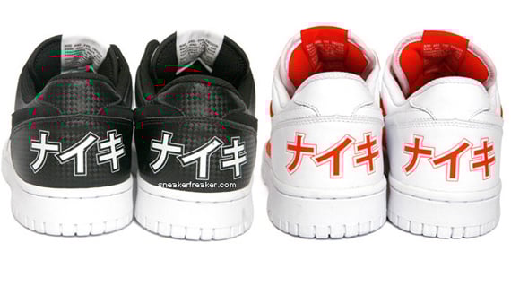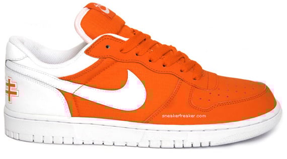 It’s been a while since the last Nike Big Nike surfaced, so it’s pleasant to see a new pack of Nike Big Nike Low’s for retail. The Nike Terminator-like/Nike Dunk-like shoe comes in four different colorways: blue, orange, white, and black. All four shoes have white midsoles and soles, and have the same Japanese writing on the back heel. Each shoe has a suede toe area and nylon upper, with more Japanese writing on the tongue tag. Although these are much like dunks in every way, this pack is still pretty clean.