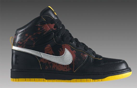 A few days ago we gave you our first look at the Nike Black Mamba Kill Bill Pack, which consists of a pair of Nike Auto Flight Highs and Nike Big Nike Highs. Well the wait is over for these bad killers, as they are both available now on the Nike site as February 2010 releases. The Nike Auto Flight High sports a varsity red/varsity red-white-speed yellow colorway, whereas the Big Nike comes in a black/metallic silver-varsity maize mockup. You can cop these shoes for $90 and $80 respectively now.
