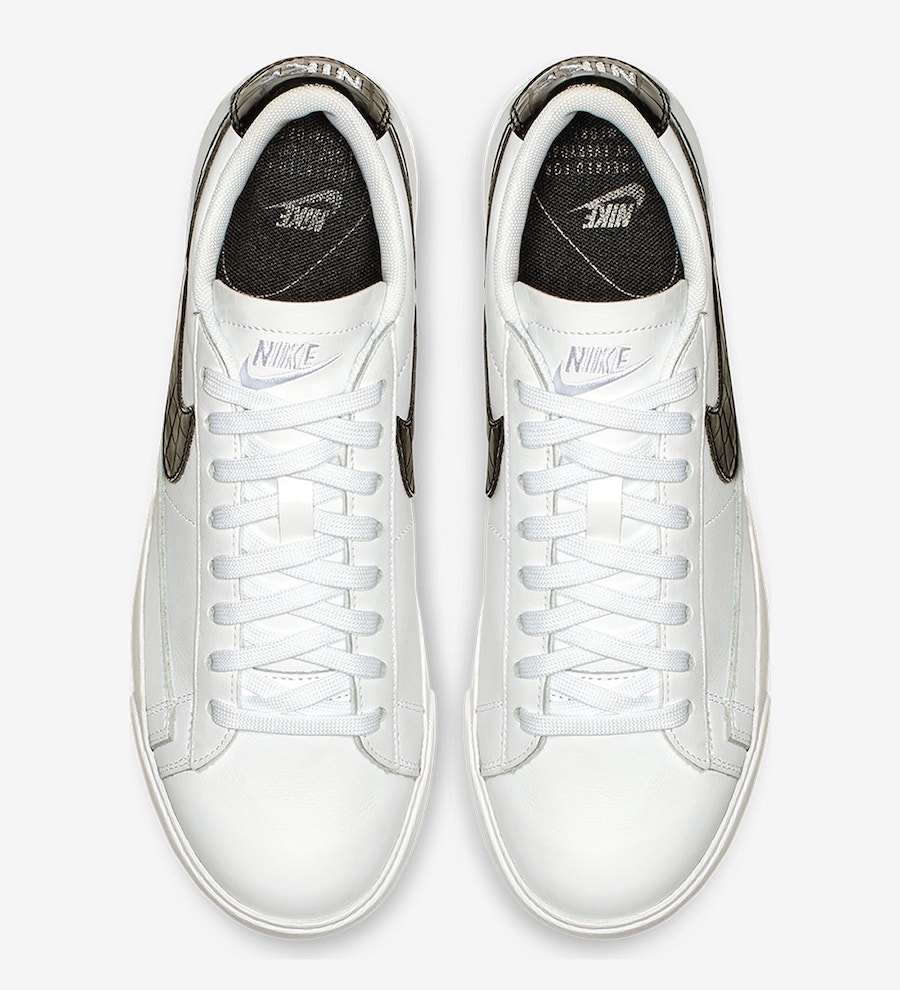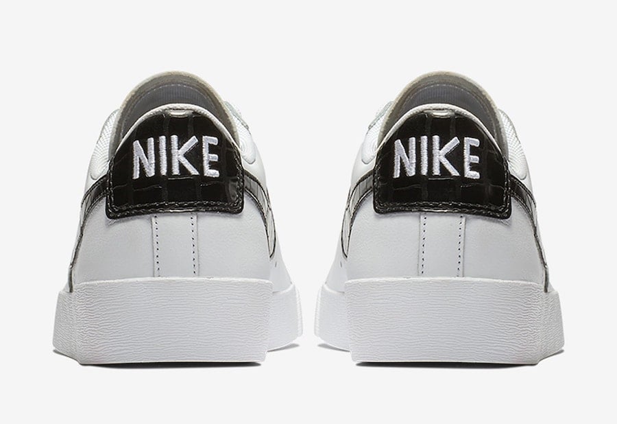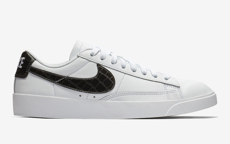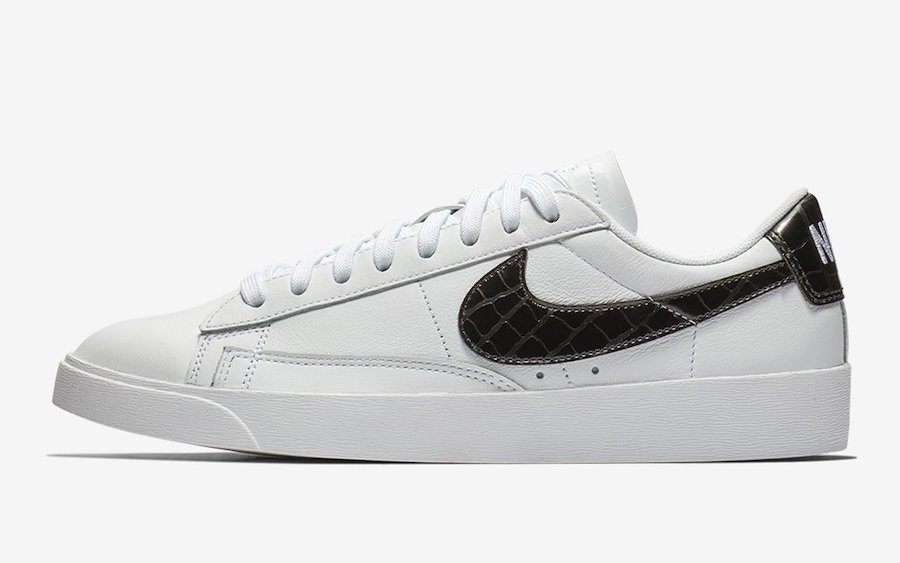 Looking closer this Nike Blazer Low comes with White leather throughout the upper while the same shade covers the laces, tongue branding, midsole and rubber outsole. Finishing the look is Black croc across the Swoosh and heel.