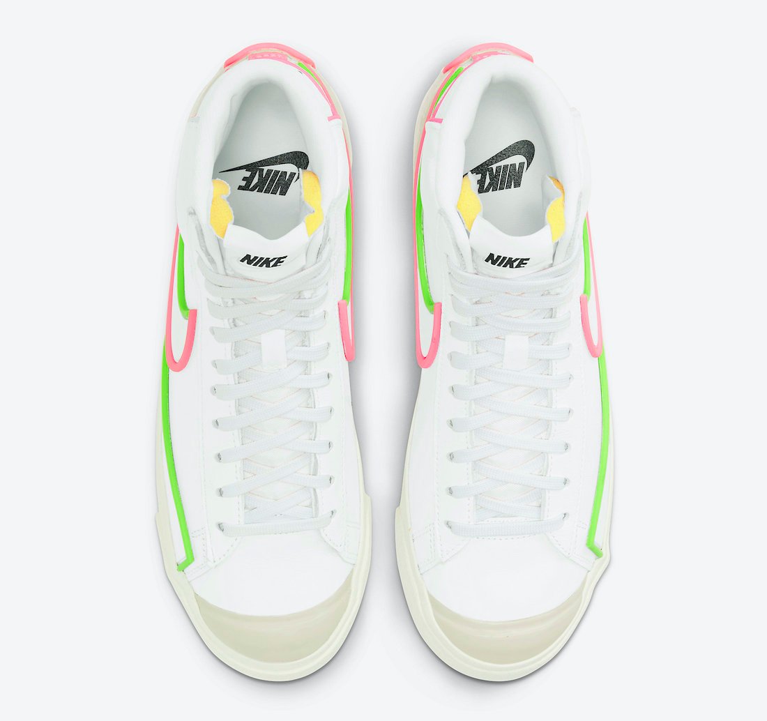 Nike will soon launch a brand new color option of the Blazer Mid โ77 Infinite. Part of the D/MS/X line, the pair comes highlighted in Electric Green and Sunset Pink.