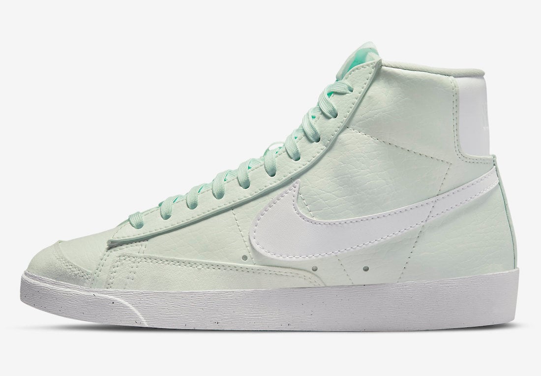 Going over this Nike Blazer Mid, it features Mint Green leather on the base while suede lands on the overlays on the toe. Next, White adorns the Swoosh logos and heels. Other details include Volt insoles with Nikeโs pinwheel logo and a White Grind rubber sole.