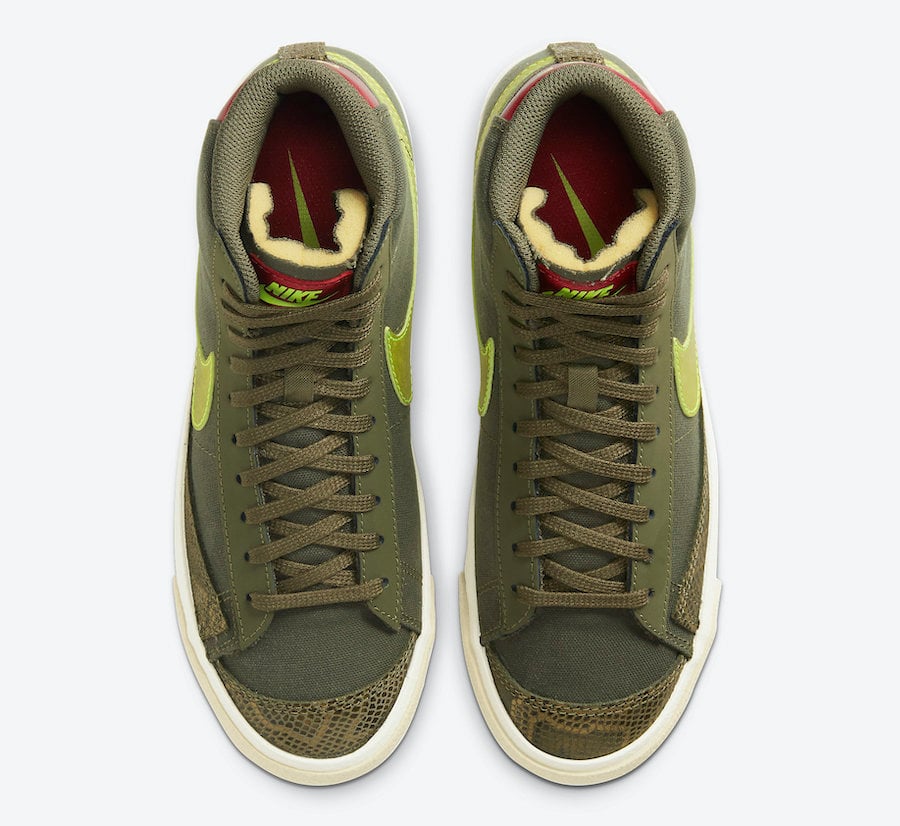 More photos of the Nike Blazer Mid โ77 โOlive Snakeskinโ can be seen below which will give you a closer look. While a release date is not available, they are expected to arrive soon at select retailers including Nike.com.
