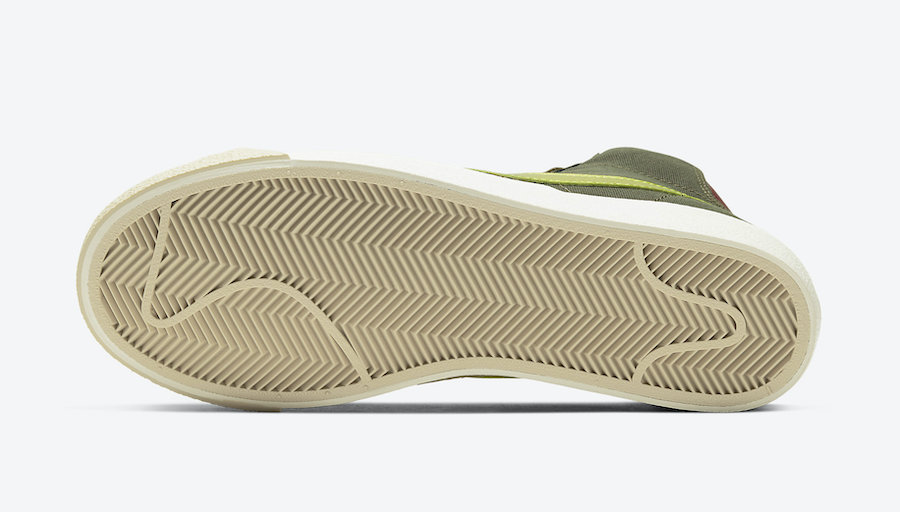 This Nike Blazer Mid comes dressed in a Medium Olive, Lemon Venom and Fossil color combination. Constructed with Olive canvas across the base while Lemon is applied to the Swoosh logos across the panels. Red is then seen on the tongue and heel. Highlighting this pair is snakeskin on the forefoot while Sail and Fossil covers the sole.