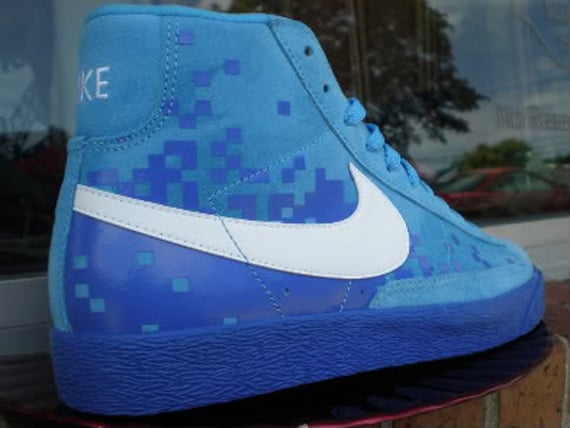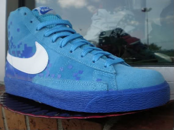 As part of Nike’s “Tecmo Bo” pack, which is a tribute pack to super- athlete Bo Jackson, the Nike Blazer Mid has released. The shoe sports a Kansas City Royals colorway with a pixelated design which pays homage to the 1989 SNES “Tecmo Bowl” video game. The upper is made of blue suede, along with a blue mesh tongue, and blue midsole. The opposite side of the tongue features a characterization of the video game to really suit the cause. This shoe is available now.
