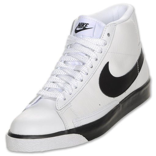 Two tone colors are always a hit with the Nike Blazer Mid, and this pair receives a Black and White treatment. Although some might say this pair is dull, if you look closely the white uppers feature Croc print, just like the red version we showed you the other day. Retail is $77.99, and you can buy now at Finish Line.