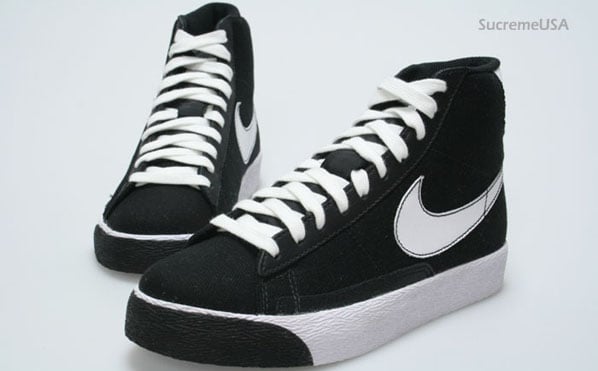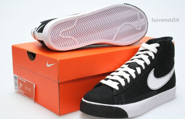 Taking a step back from multiple colors and patent leather, we have a new Nike Blazer Mid has dropped that features a Black and White color scheme. The Nike Blazer Mid featured also contains a Black Denim upper. As of right now, GS sizes (Grade School) are available, but this model may drop in larger sizes. Stop by eBay to grab your pair.