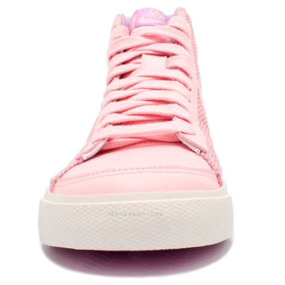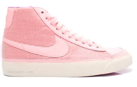 For all the pink lovers out there, you’ll be excited to see what Nike’s cookin’ up in the lab. The Nike Blazer Mid Sample in a light pink colorway definitely appeals to the kids and ladies. The shoe consists of a full pink mesh upper and pink leather swoosh. Of course it is contrasted by a clean white midsole to go along with the pink outsole. The inner lining rocks a light purple to add some color to the mix of pink. This shoe is only a sample but is sure to get a general release, unless you don’t mind paying the $160 price tag.