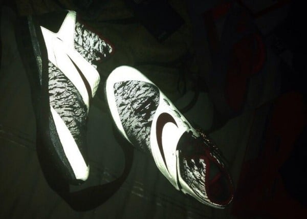 And while Calvin Johnson will unfortunately miss the Pro Bowl due to a knee injury, his kicks are pretty kick. Speaking of which, they take on a metallic silver and infrared-inspired colorway, have icy bottoms, and feature 3M reflective uppers that illuminate in the dark. Surprisingly, a matching slide also exists. Check ’em out!