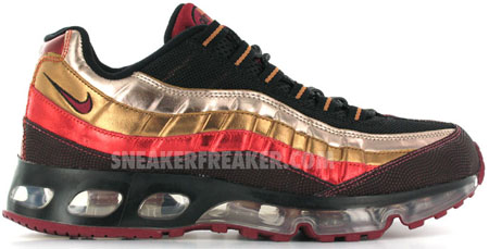 Each model features a Bronze, Red and Black color-way with the addition of a Copper textured material which appears to be similar to the leather seen on a Basketball or Football. Available now at select Nike retailers. Via Sneaker Freaker.