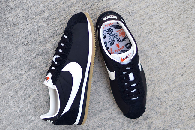Known as the Oregon Nike Cortez Nylon, this time around the brand dresses them up in a clean Black and White color theme. Paying tribute to the golden days of the Nike Cortez, the heel features โNIKEโ in an old school font along with 72. The highlight of this pair is the various logos seen on the insoles paying homage to Blue Ribbon Sport. Finishing the look is Gum on the outsole.