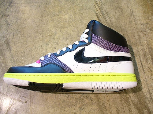 It was only a matter of time till we saw random and inconsistent models from Nike, here’s a look at the latest Nike Court Force High that looks a little odd. Featured is a couple different materials including purple snakeskin to go along with the white, pink, yellow and black color-way. The yellow mid-sole doesn’t help the shoe either, it looks out of place and could have done with out it. With a few minor tweaks, this could have actually been a decent release. Via In4mants.