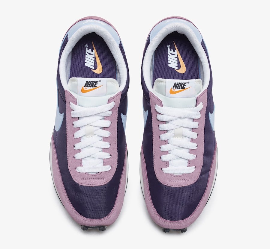 Featuring an Eggplant and Hydrogen Blue color combination. This Nike Daybreak comes constructed with nylon across the upper while suede lands on the overlays. Leather is applied to the Swoosh and heel while a Black rubber waffle outsole finishes the look.