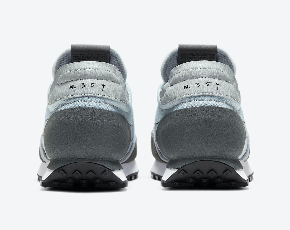 This Nike Daybreak comes in a Wolf Grey, Black, Iron Grey, and White color combination. Looking closer, mesh runs across the upper while suede and leather adorn the overlays. Following, we have exposed stitching, N.354 branding on the tongue and heel, and shades of Grey on the upper. Finally, a White midsole and Black waffle rubber outsole finish the look.