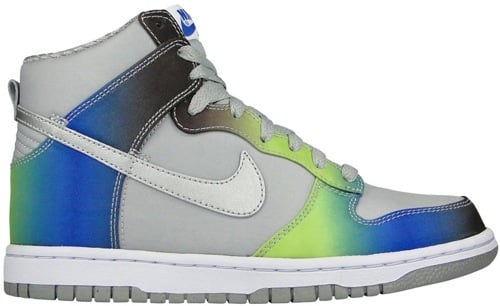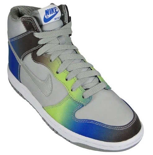 The Nike SB line has created quite a stir with a very colorful “wool” Dunk high. However, it seems as though Nike is making sure you don’t HAVE to go SB for a multicolored Dunk. Pictured here is a Nike Dunk high that sports a predominantly light grey coloring along the upper, with metallic silver, blue sapphire, and yellow accenting the shoe throughout. Expect these to drop stateside soon, as certain overseas retailers online already have these in stock and available for purchase today. Would you say the Nike SB Dunk or regular Dunk line won this face-off?