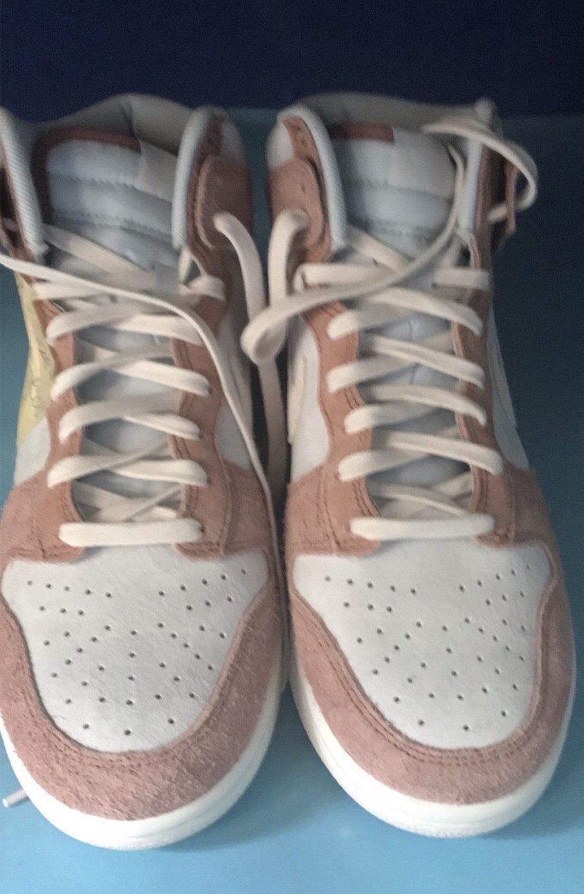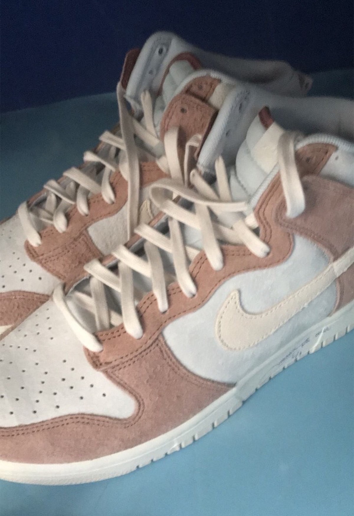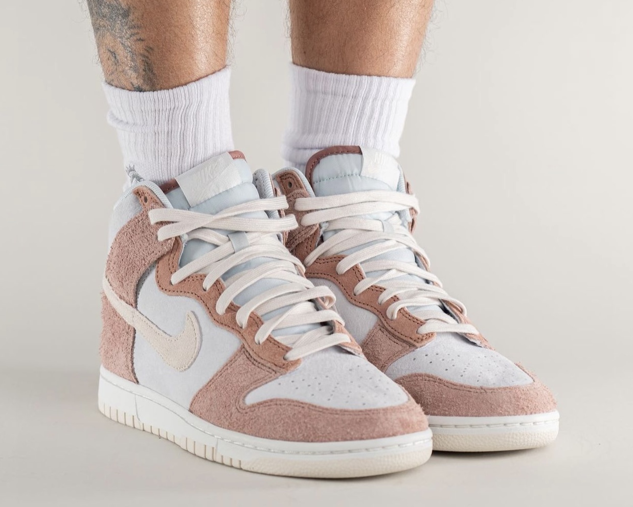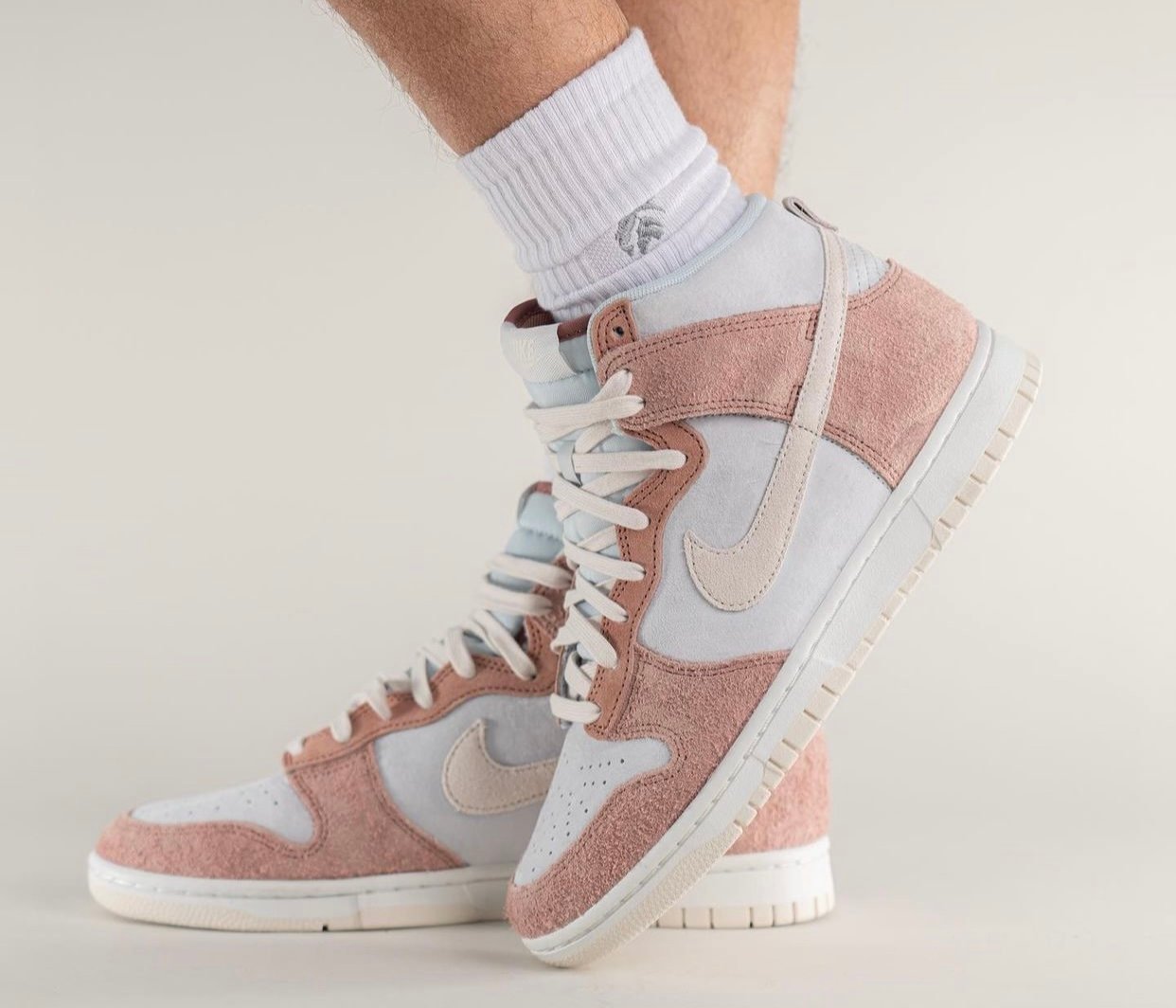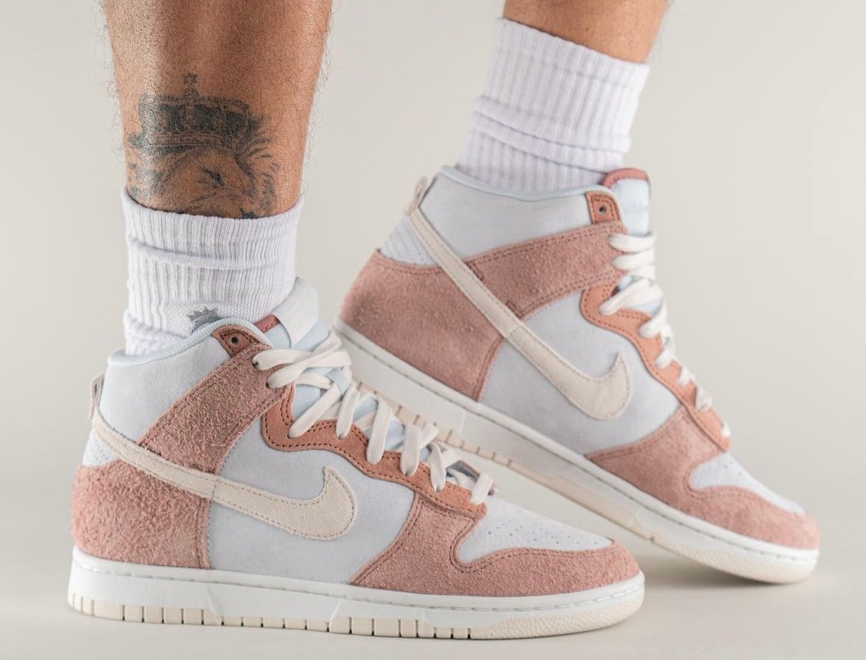 Update (3/5): We now have on-feet photos of the Nike Dunk High โFossil Roseโ via yankeekicks.