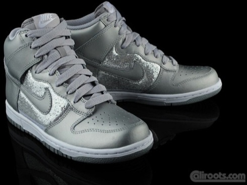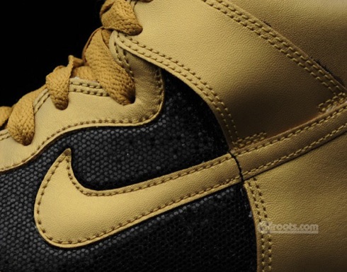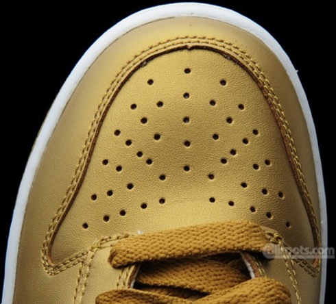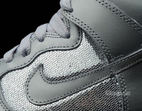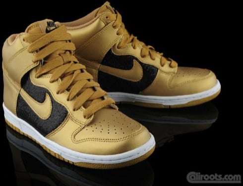 Towards the end of August we brought you an early look at a pair of gold and a pair of silver Nike Dunk Highs each draped in metallic material. Now that the shoes have begun to become available through certain Nike retailers, we can provide you a much closer look at the execution on each of these shoes. Something that stands out with the gold pair is that the mid-panels are actually black, whereas the silver pair consists of silver on the mid-panel as it does on the rest of the shoe. Lastly, both pairs come with white midsoles and their respective metallic colored shoe laces. So check in with us after the jump for the clearest set of pictures yet of this pack.