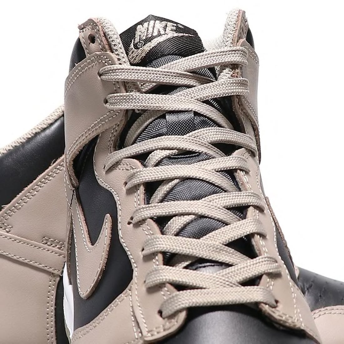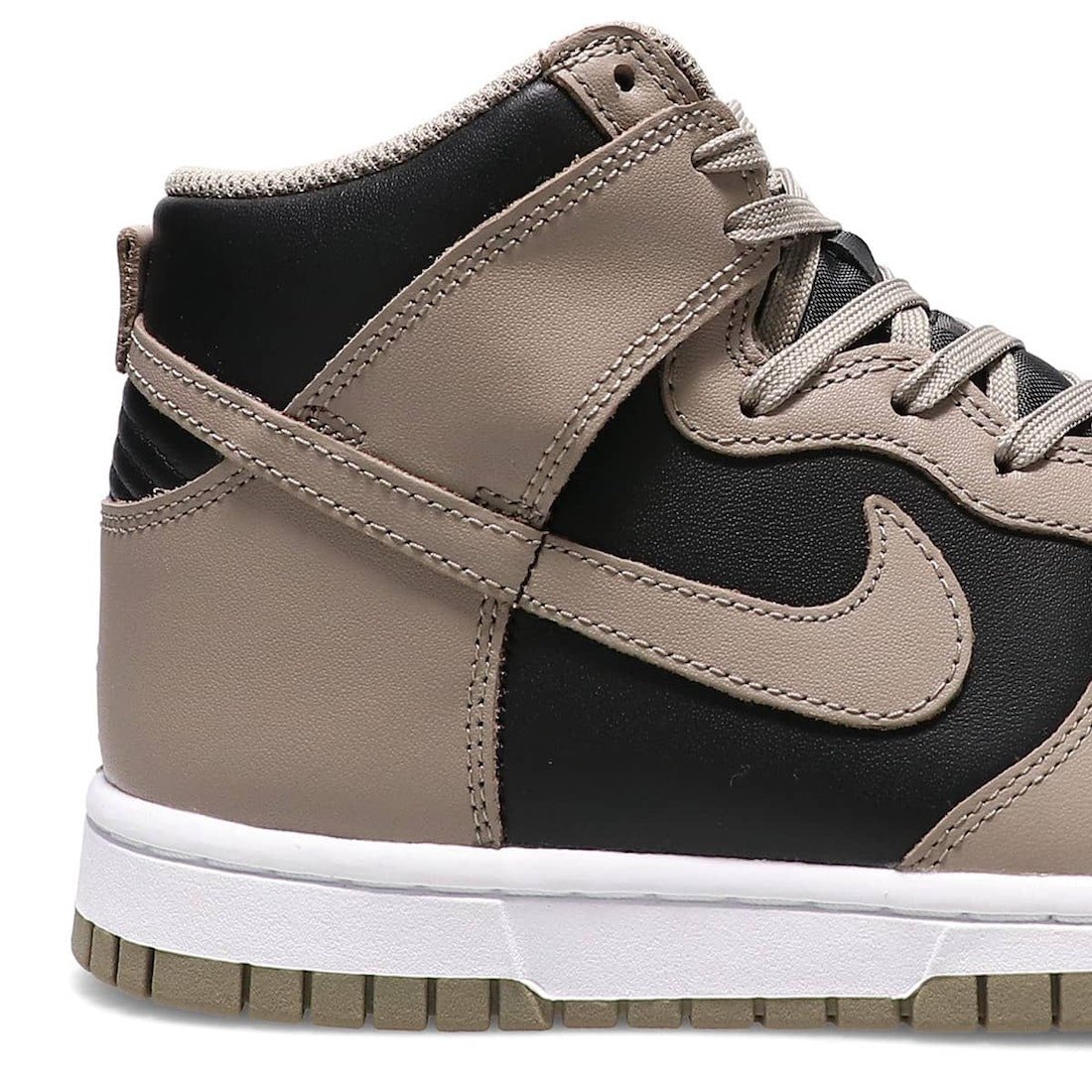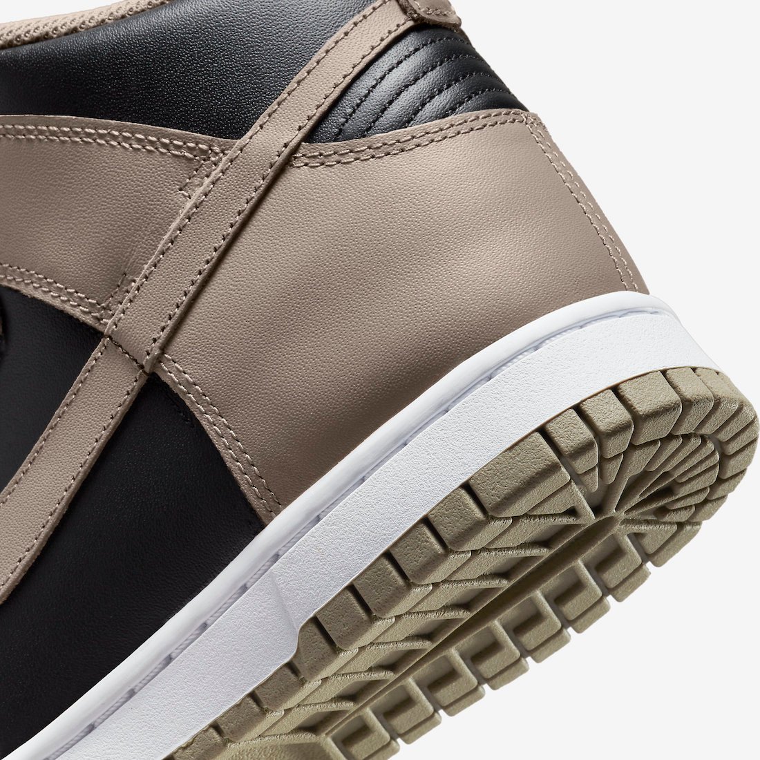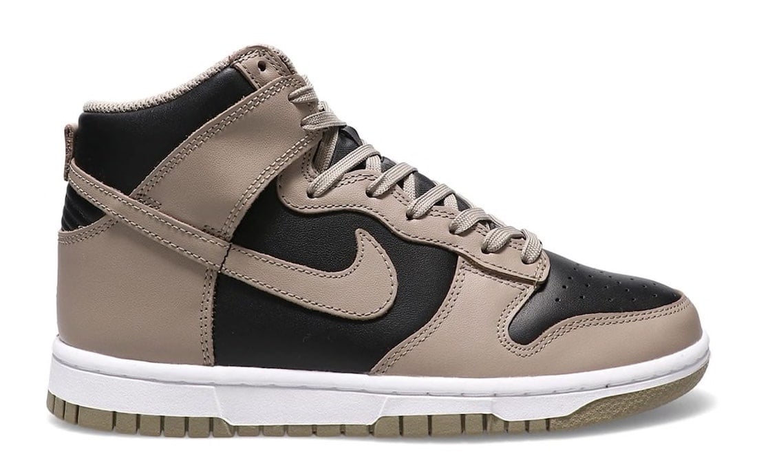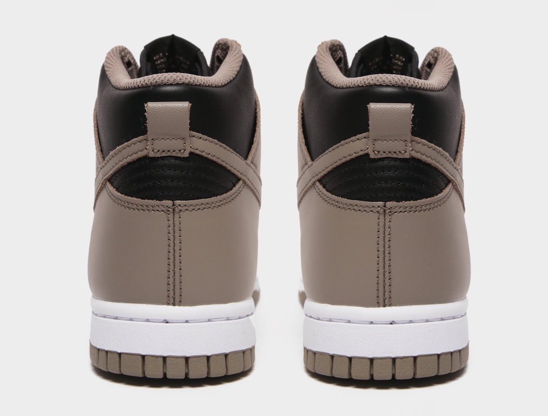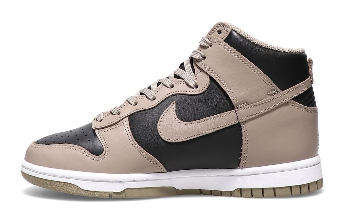 This Nike Dunk High features a Black and Moon Fossil color combination, resulting in a clean theme. First, we have Black leather across the base while Moon Fossil, which has an earth-like feel, appears on the overlays and Swoosh. Following, Moon Fossil covers the laces, tongue branding, heel tabs, liner, and the rubber outsole. Other highlights include a Black nylon tongue and a White midsole.