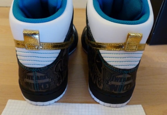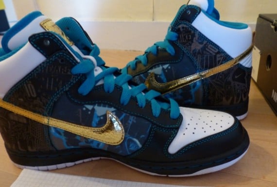 Created only as an employee exclusive for Nike European employees whom attended a supposed 2010 internal competition in Dubai, this Nike Dunk High model is stylish from top to bottom. With gold foil branding and intricate detailing throughout, other features of this limited edition pair include Zoom Air cushioning, “We Are Nike” custom insoles, and a host other details that make reference to the competition and country. Now, although these exclusives come in a NikeiD box, let us reassure you that these aren’t your average customs!