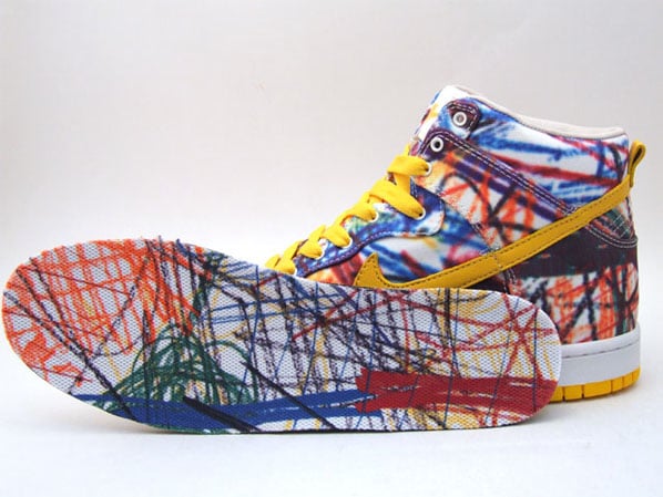 We’ve repeatedly shown shots of this Back to School edition Nike Dunk High Premium QK, but this will be the last look as they have just been released. As mentioned before, they are composed of a full Crayon scribble like print design throughout the sneaker.
