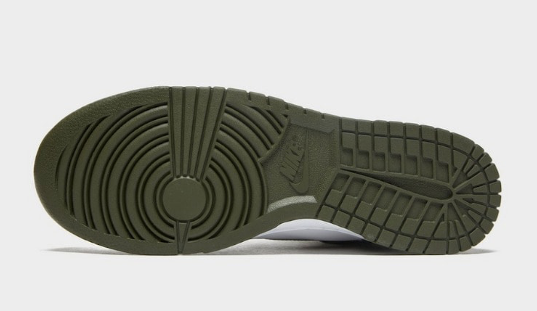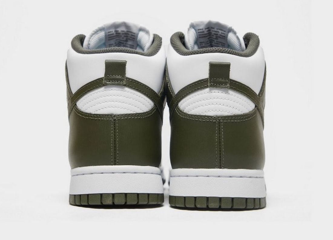 Once again, the pair sports a two-tone color theme consisting of White and Cargo Khaki. This Nike Dunk High features leather throughout while White runs across the base and Cargo Khaki appears on the overlays. More Khaki hits the laces, Swoosh, liner, tongue label, and the rubber outsole. Lastly, White runs across the midsole, tongue, and insoles.