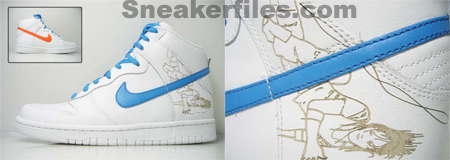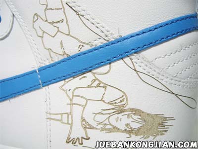 This Nike Dunk is just nice, the White Blue color scheme really adds to the sneaker. If you look closely you can see a small picture of the other side of the Dunk which the swoosh logo is orange. At the heel, you see a girl holding a B-Boy/B-Girl pose. More information coming soon, but if you know any please leave a comment. Thanks to our friends at juebankongjian.