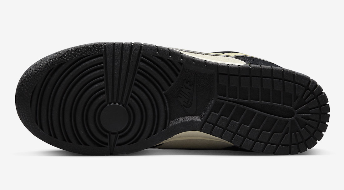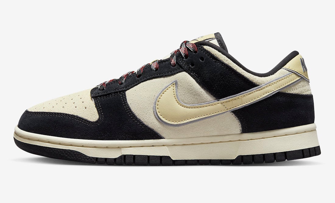 This Nike Dunk Low features a Black, Team Gold, and Coconut Milk color combination. Constructed with suede, Coconut Milk runs across the base while Black lands on the overlays. Next, we have doubled-layered Swoosh logos, heel overlays, and tongue labels with a Cream finish. Other details include houndstooth laces, a Sail midsole, and a Black rubber outsole.