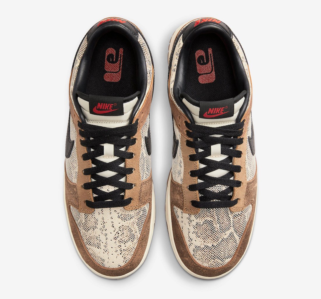 This Nike Dunk Low comes constructed with premium materials throughout, a signature trait seen on Japan exclusives. Utilizing distressed suede and scuffed leather on the overlays, a snakeskin pattern on the underlays, textured leather Swoosh logos, and a smooth leather liner. Other details include Red branding on the tongue labels, heels, and insoles, while a two-tone rubber sole finishes the look.