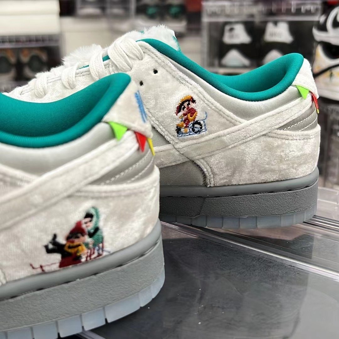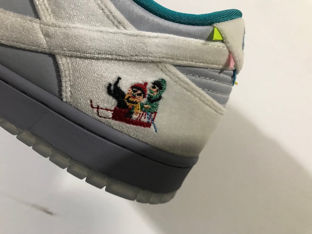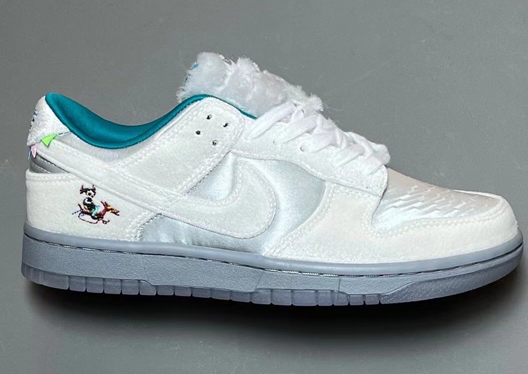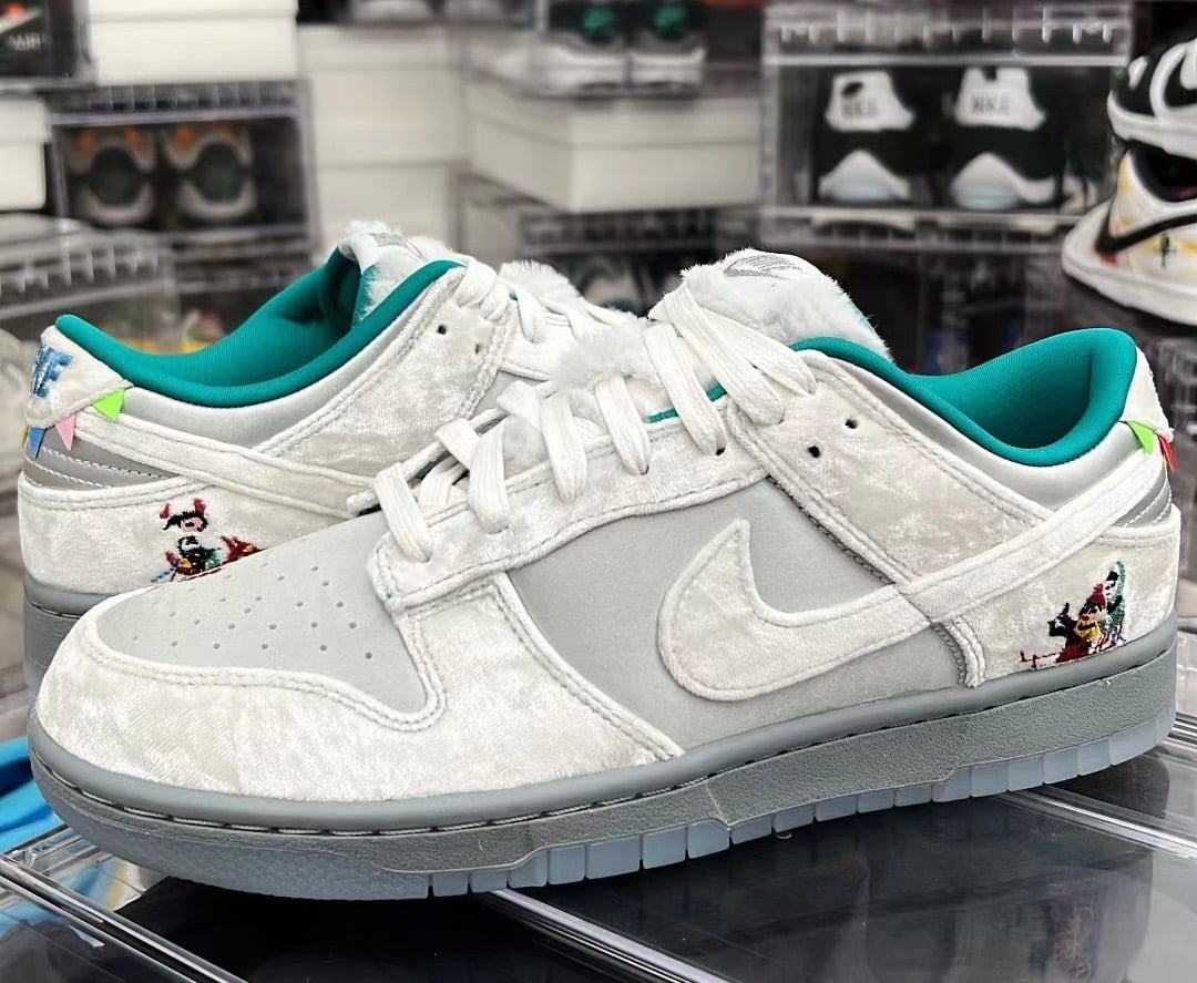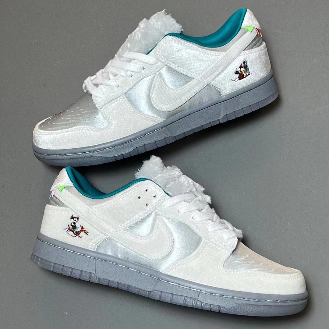 Nike Sportswear will release a new Dunk Low that appears to represent Winter and possibly Christmas. We have icons that have court jesters riding on sleds.