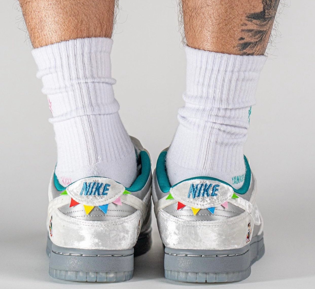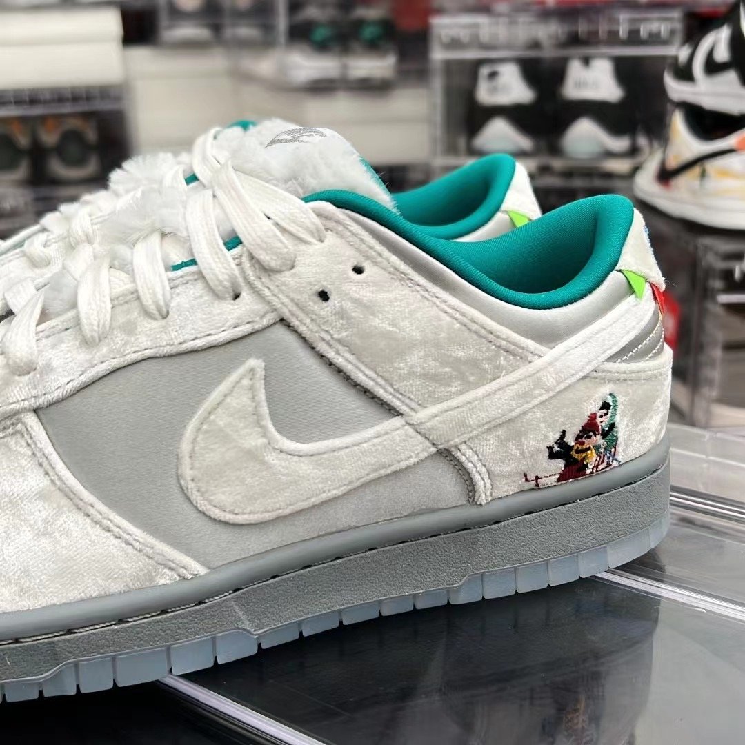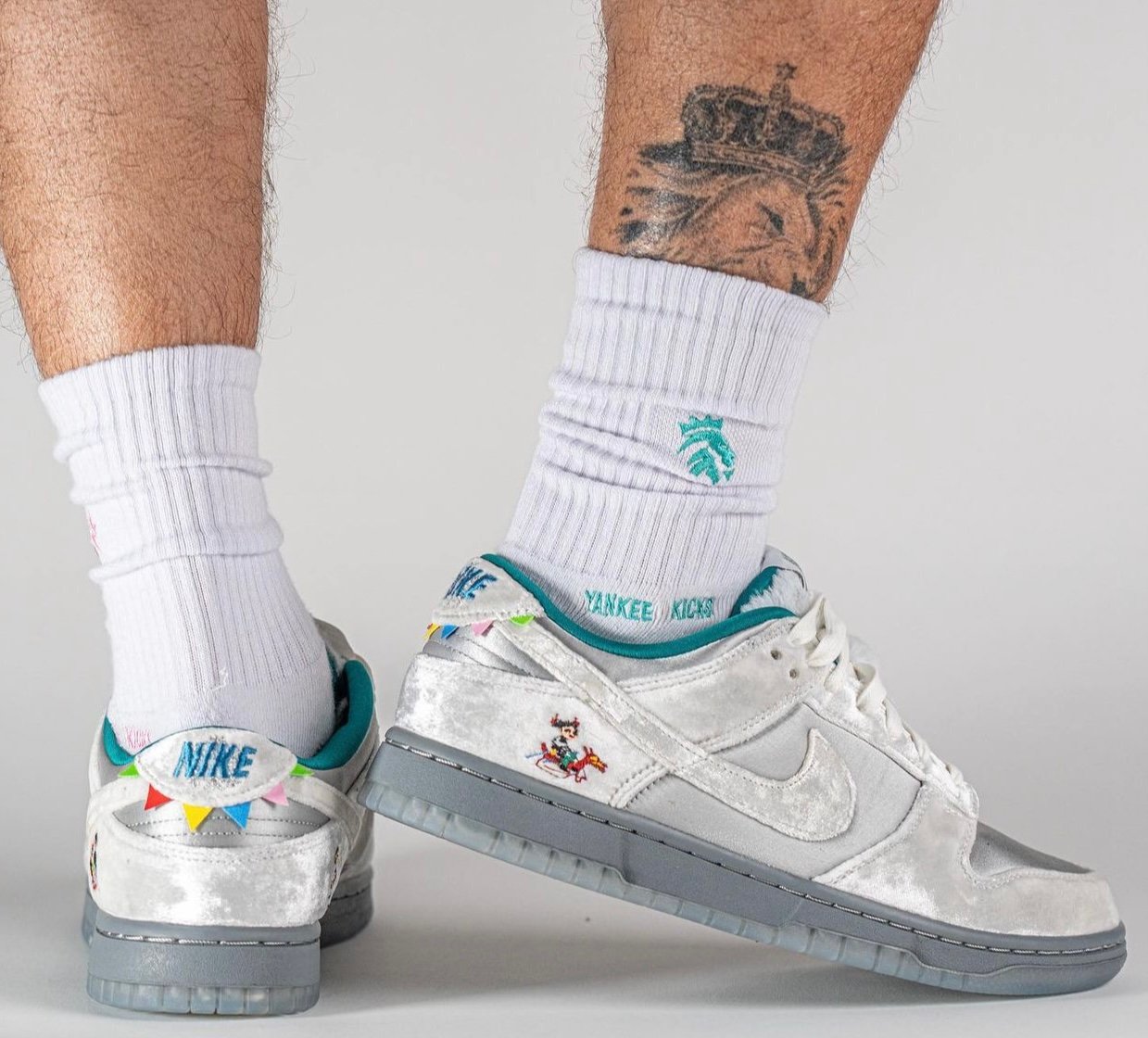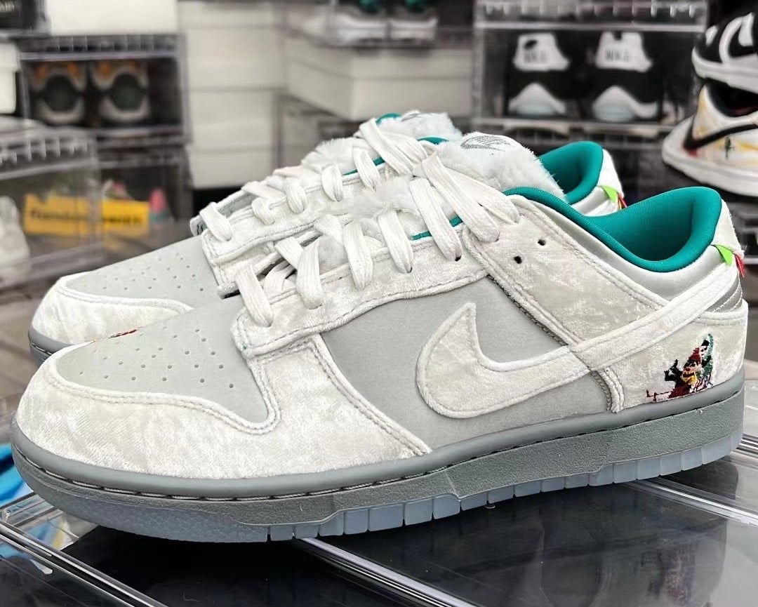 Nike Sportswear will release a new Dunk Low that appears to represent Winter and possibly Christmas. We have icons that have court jesters riding on sleds.