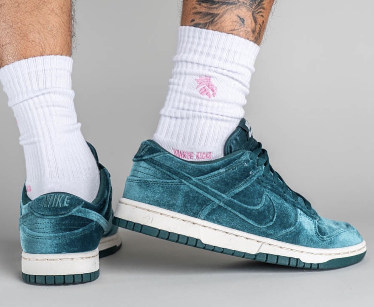 Nike Dunk Low Green Velvet On-Feet