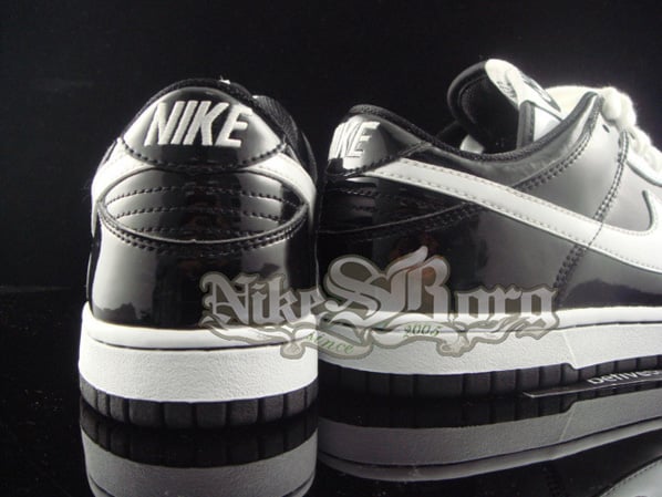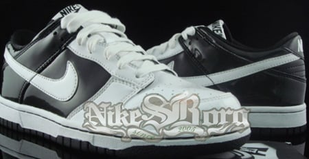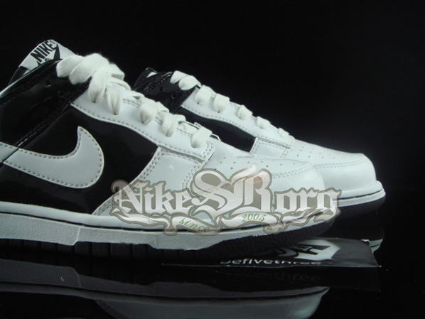 A new addition to the Nike Dunk Low family, which is nicknamed Pearl Effect. As you can see, this Nike Dunk Low has a pearl effect throughout the sneaker. The shoe is made of patent leather, and the color way is is simple: Black/White. Via nsb.